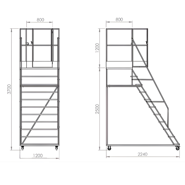 A Escada Tipo Plataforma com Rodas e Guarda-Corpo é desenvolvida conforme a NR12, garantindo total segurança em trabalhos em altura. Ideal para almoxarifados, depósitos, armazéns, lojas de departamento, obras da construção civil e áreas industriais, ela substitui com eficiência o andaime fixo tradicional, oferecendo mobilidade, estabilidade e praticidade.