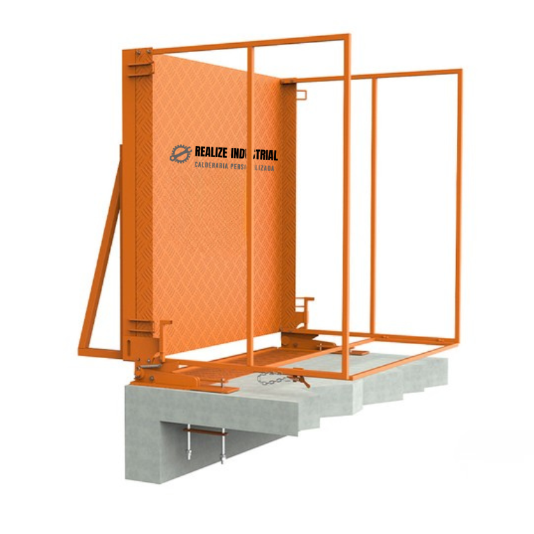Equipada com viga estrutural, piso em chapa antiderrapante, ganchos de içamento em aço laminado e guarda-corpo em tubo estrutural, a plataforma garante segurança operacional conforme exigências da NR-18. Seu sistema basculante/dobrável facilita o uso em gruas de torre, otimiza espaço de armazenagem e agiliza a rotina de obra.